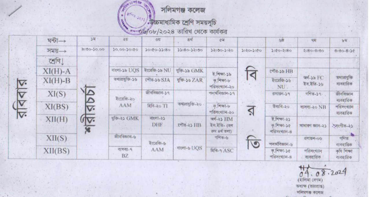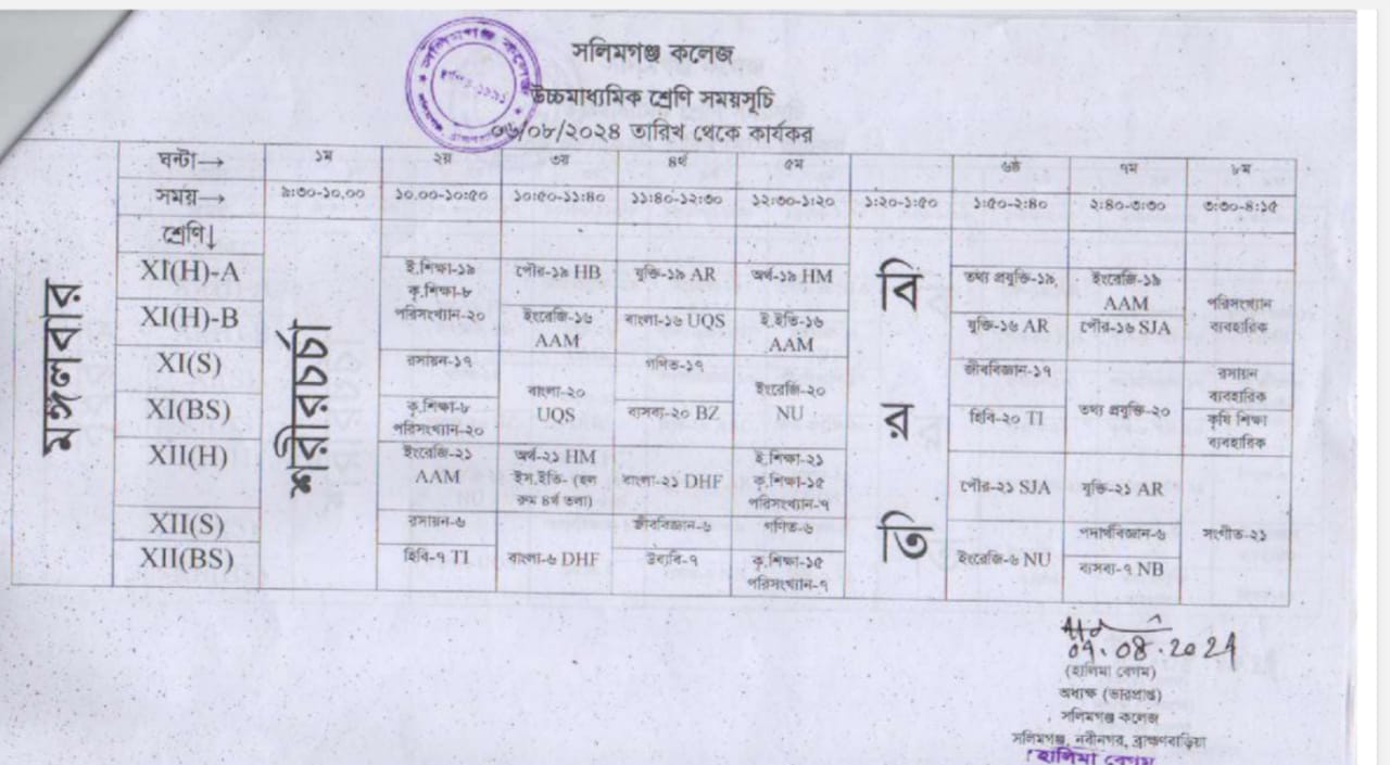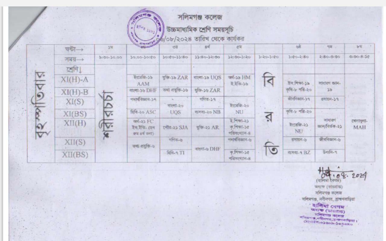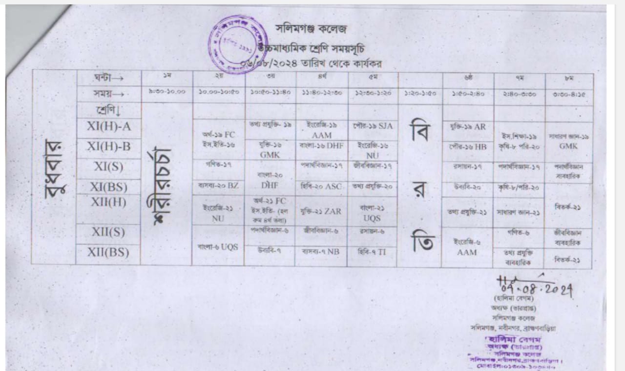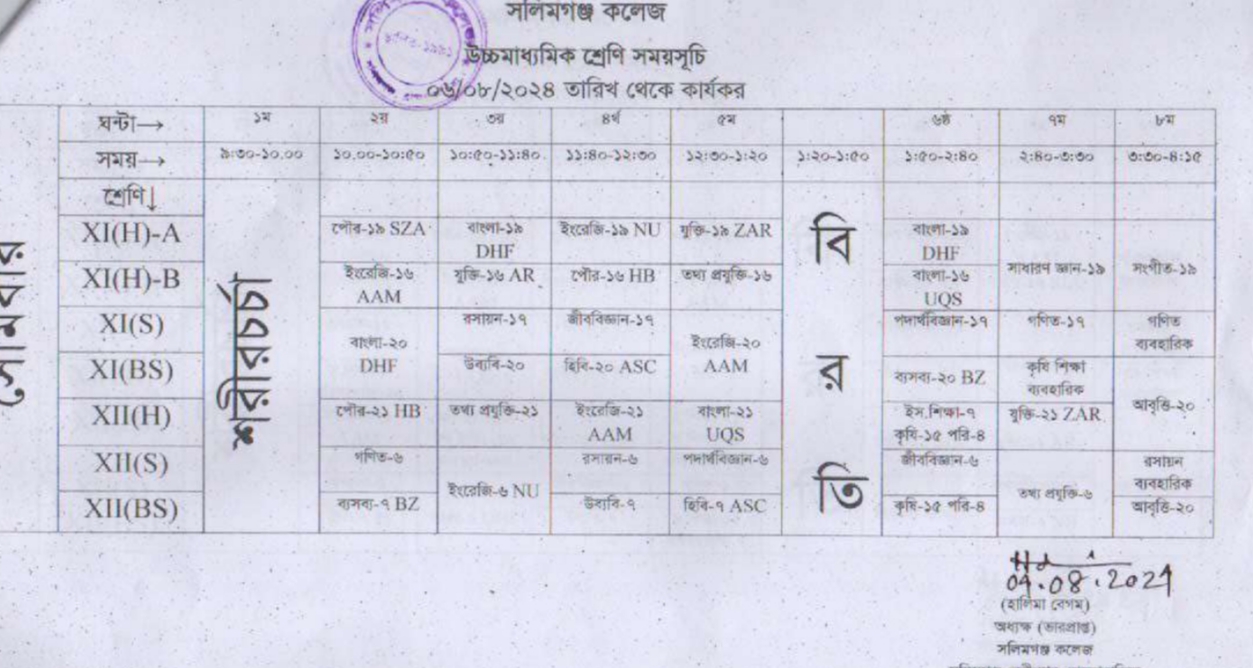 এইচএসসি পরীক্ষা ২০২৫ চলাকালীন সাময়িক শ্রেণি সময়সূচি